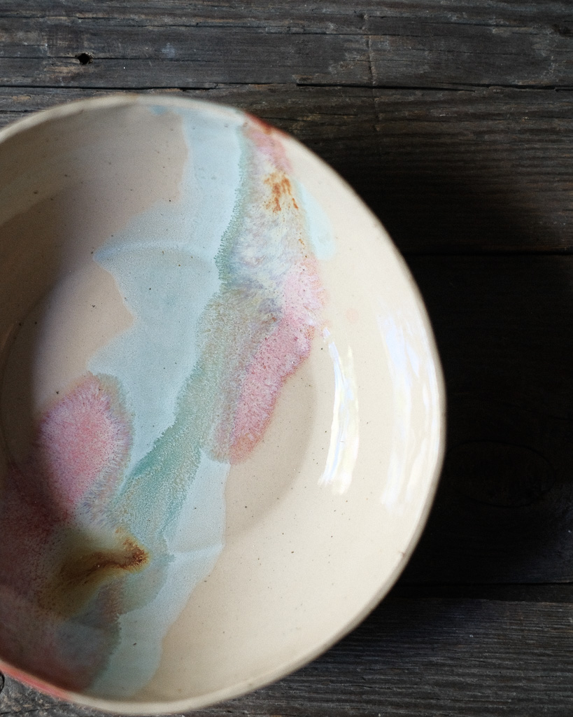 Dotyk jest dla mnie bardzo ważnym zmysłem, dlatego na moich naczyniach lubię łączyć różne faktury i materiały, które kontrastują ze sobą. Zestawiam delikatne szkliwa z szorstkimi angobami. To uczta nie tylko dla oka!
