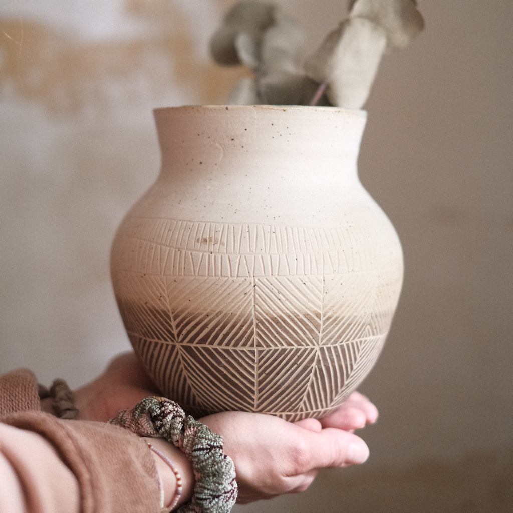 Każde naczynie wytoczyłam w tradycyjny sposób na kole garncarskim, a później ozdobiłam ręcznie. Nie ma dwóch takich samych sztuk.